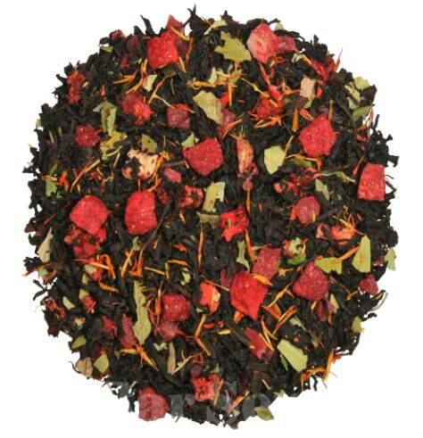 Черный чай, кусочки и листья клубники, цукаты ананаса, гибискус, листья стевии, натуральный ароматизатор.